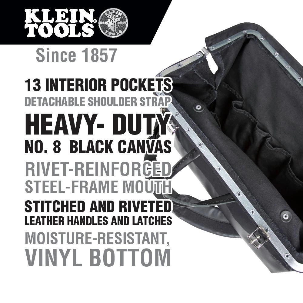 - Tool bag is constructed with heavy-duty No. 8 black canvas