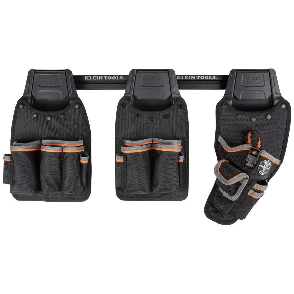 - Heavy-duty anodized aluminum rack securely stores three Modular Tool Pouches