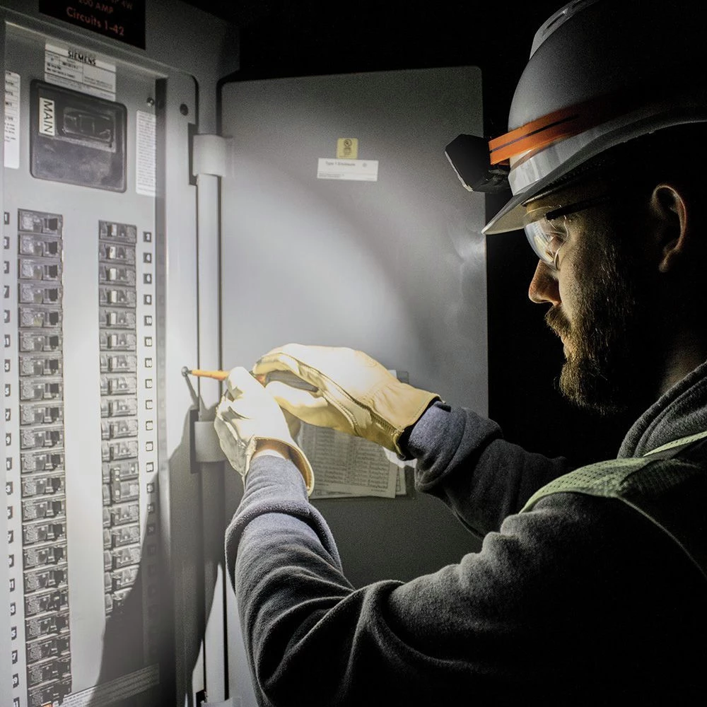 - Adjustable silicone strap secures headlamp onto head, hard hat, or cap