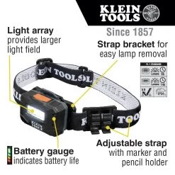 Klein Tools 56064 3.7V Lithium-Ion 400 Lumens Cordless Rechargeable Headlamp With Silicone Strap