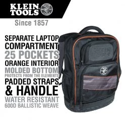 Klein Tools 55456BPL Tradesman Pro 25-Pocket Water Resistant Heavy Duty Electrician’s Backpack